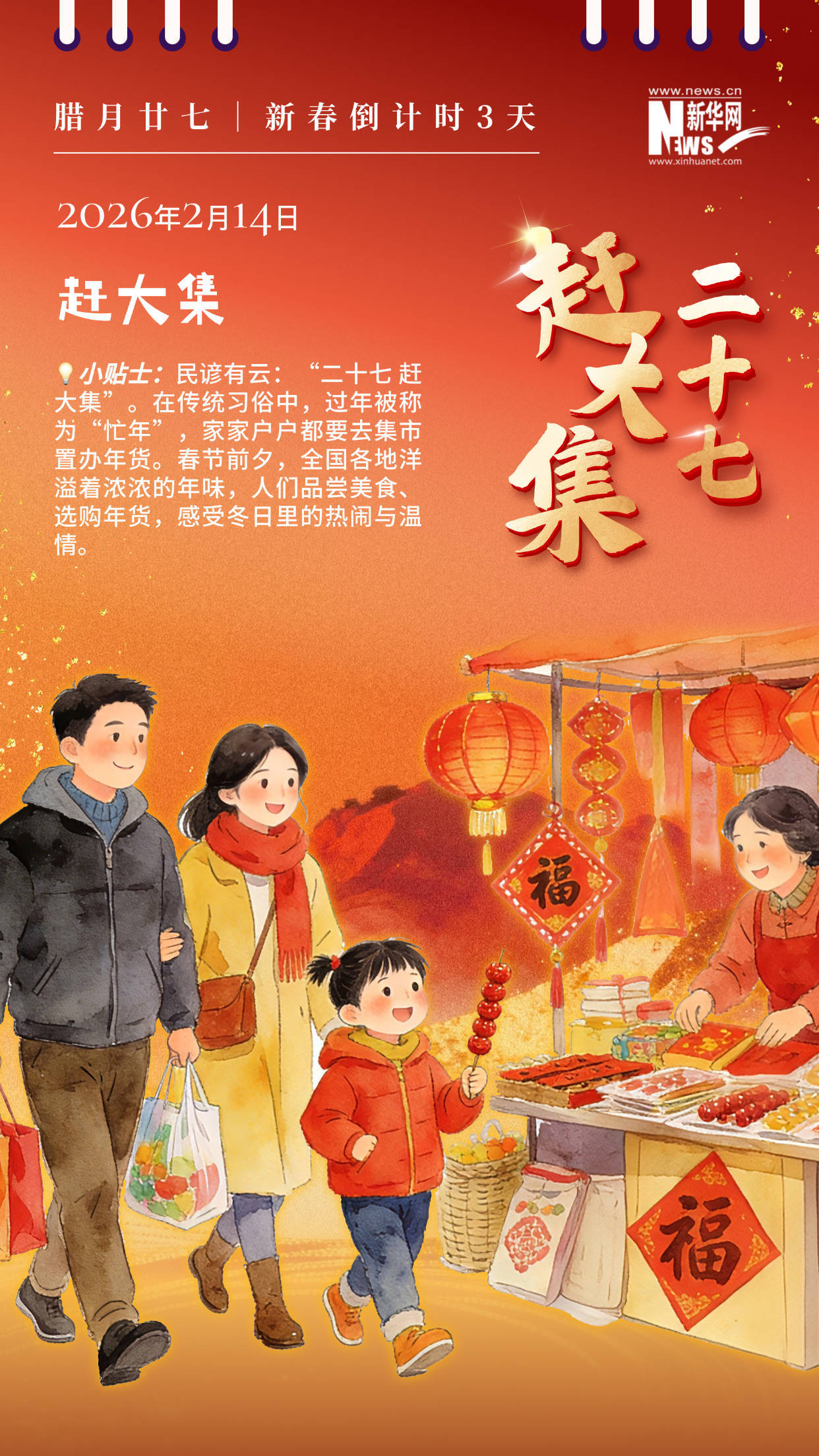 民谚有云:“二十七 赶大集”。在传统习俗中,过年被称为“忙年”,家家户户都要去集市置办年货。春节前夕,全国各地洋溢着浓浓的年味,人们品尝美食、选购年货,感受冬日里的热闹与温情。